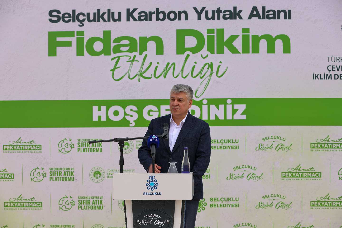 Fidan dikim etkinliği ile geleceğe yatırım yapmaktan mutluluk duyduğunu ifade eden Selçuklu Belediye Başkanı Ahmet Pekyatırmacı, “Çevre, Şehircilik ve İklim Değişikliği Bakanlığımızın Çölleşme ve Erozyonla Mücadele Genel Müdürlüğümüzle yaptığımız protokol kapsamında Selçuklumuzda oluşturduğumuz karbon yutak alanında fidan dikim etkinliğinde sizlerle birlikteyiz. Küresel anlamda bir sorunumuz var. İklim değişikliği küresel anlamda tüm insanlığın sorunu. Burada tabii ki kuraklık ön plana çıkıyor ve kuraklıkla birlikte, yağış rejimlerindeki düzensizlikle birlikte aslında çevreyle ilgili pek çok olumsuzluğu da bir arada yaşıyoruz. Bu manada tabii üzerimize büyük sorumluluklar düşüyor. En büyük sorumluluklarımızdan bir tanesi de çevremizde yeşil alanların arttırılması, karbon salınımının azaltılması ve bununla birlikte de yutak alanların oluşturularak iklim değişikliği noktasında ortaya çıkan olumsuzlukların en aza indirilmesi ve aslında geleceğe bir miras bırakma anlamında geleceğe bir yatırım yapılması. Bu anlamda Çevre Şehircilik ve İklim Değişikliği Bakanlığımız bütün kurumlarıyla, bütün genel müdürlükleriyle bu alanda çalışmalar üretiyor. Tabii ki Çölleşme Ve Erozyonla Mücadele Genel Müdürlüğümüz bu işin merkezinde yer alıyor. Ben bu anlamda yapılan tüm çalışmalar için sayın genel müdürümüze özellikle teşekkür ediyorum. Hem Türkiye'de hem bütün dünyada aslında örnek niteliğinde çalışmalara da genel müdürlüğümüz imza atıyor. Bugün burada 9 farklı türde 9 bin 400 adet fidanın toprakla buluşturulması için bir aradayız. Bu fidanların seçiminde tamamen iklim ve bitki örtüsüne uygun ve bizim yerel anlamda hem doğaya katkı sağlayacak hem de yetiştiği zaman karbon salınımı esnasında karbonun ortadan kaldırılması anlamında çok önemli fayda sağlayacak bitki türlerini burada inşallah hep birlikte toprakla buluşturmuş olacağız. Tabii iklim değişikliğiyle ilgili mücadele kapsamında çok farklı programlar yapıyoruz, çalışmalar yapıyoruz. Orman Bölge Müdürlüğümüzle de çok sayıda alanda, çok geniş alanlarda ağaçlandırma çalışmaları yapıyoruz.” dedi.