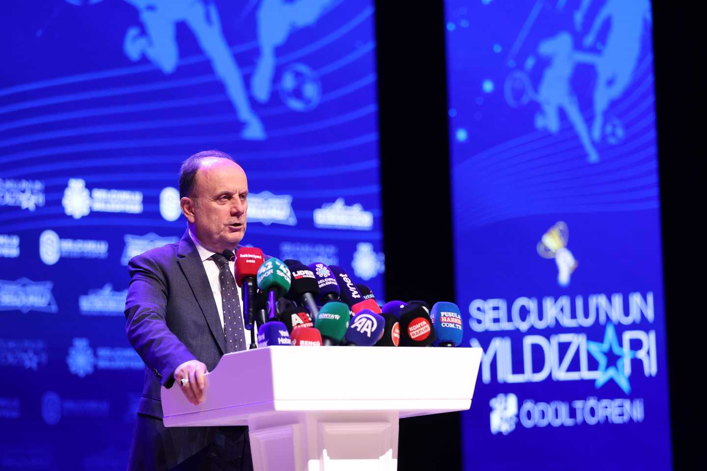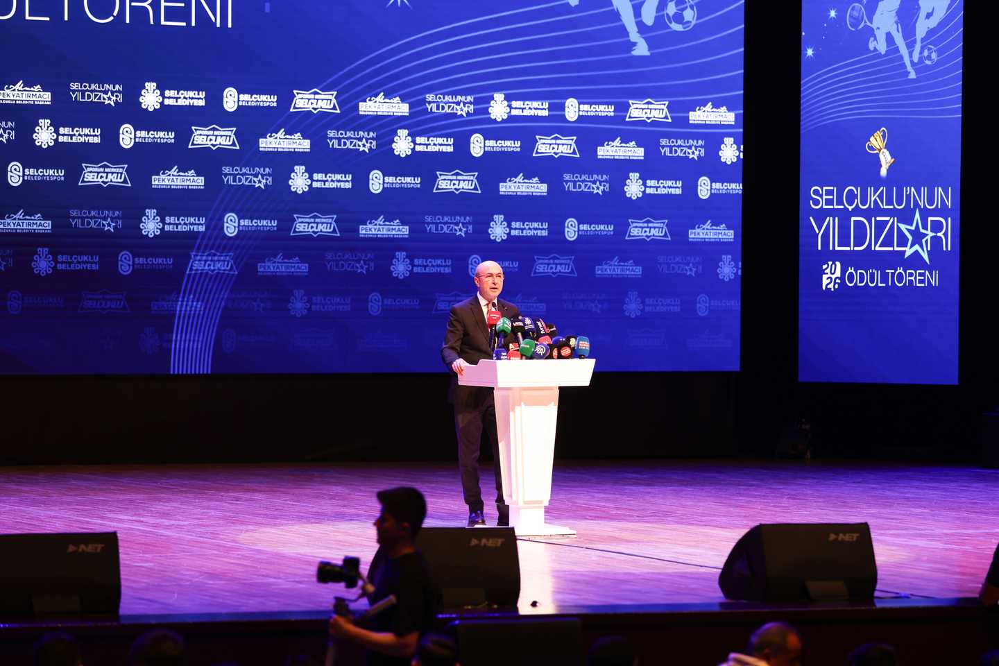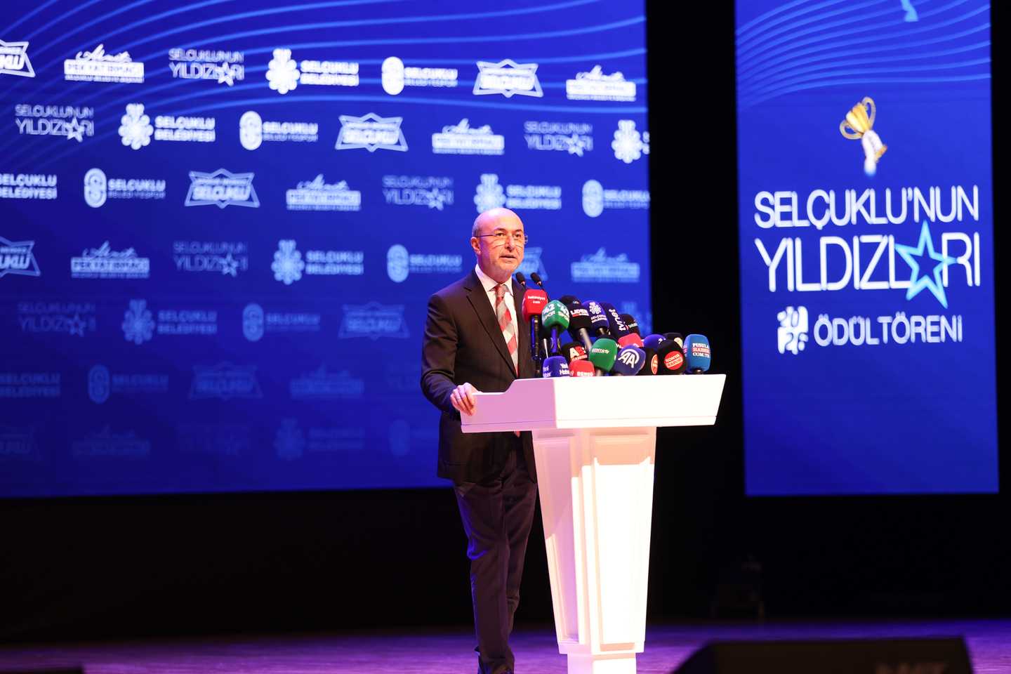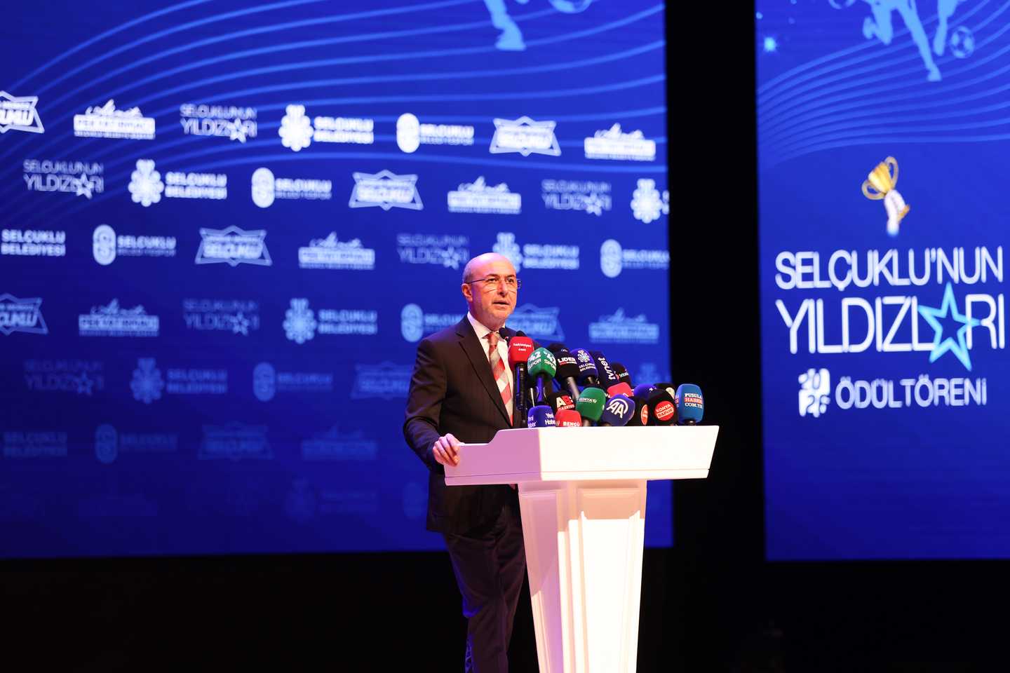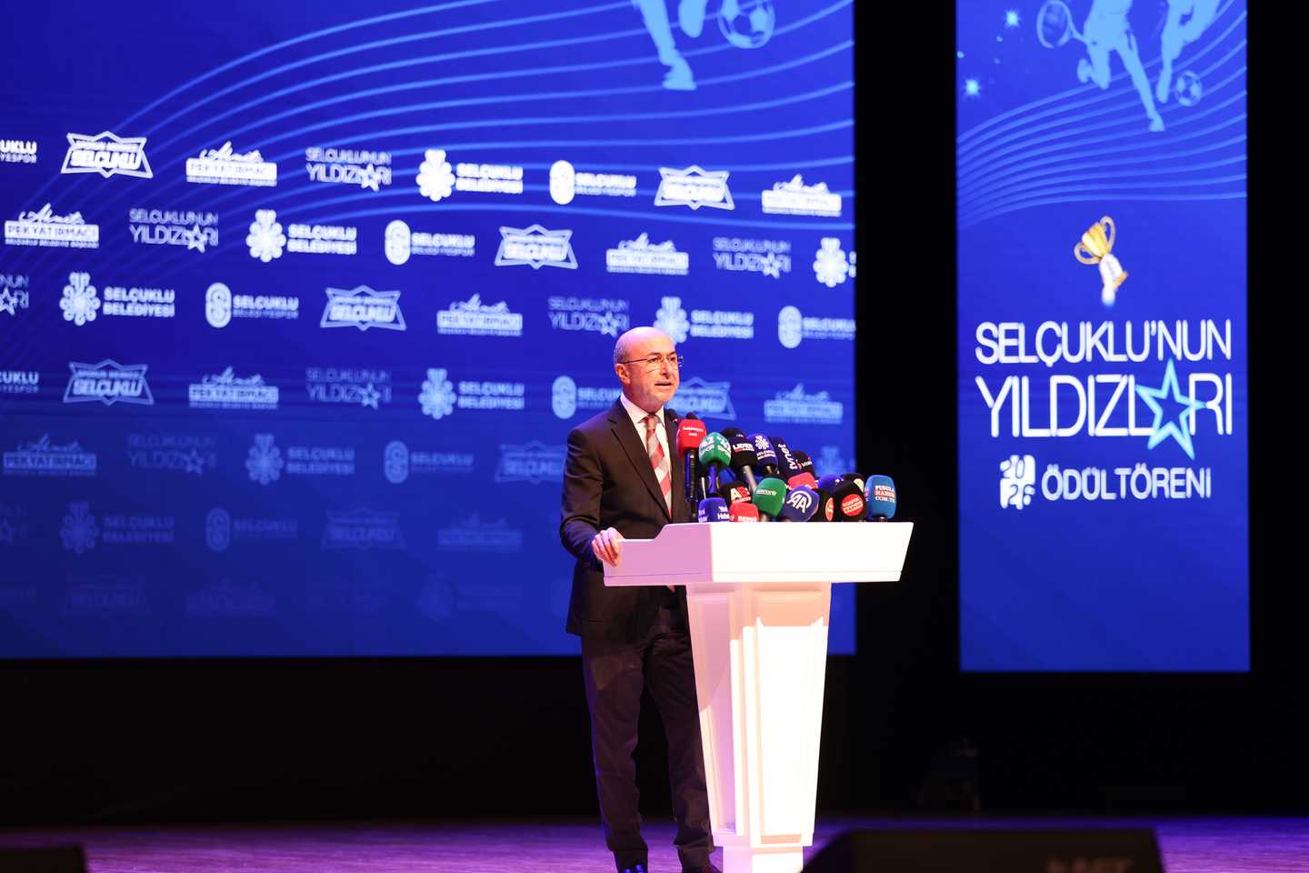 Elde edilen bu başarıların gelecekte ulaşacakları daha büyük hedeflerin habercisi olduğuna inandığını belirten Tezcan, “Selçuklu Belediyespor Kulübü olarak sporun birleştirici gücünü her zaman ön planda tutarak, başarıyı sürdürülebilir bir kültür hâline getirmeyi amaçlıyoruz. Bu akşam ödül alacak tüm sporcularımızı ve onların başarısında büyük emeği olan kıymetli antrenörlerimizi gönülden kutluyorum. Bu başarıların arkasındaki en önemli destekçilerden biri olan sporcu ailelerimize özellikle teşekkür etmek istiyorum. Onların katkısı ve fedakârlığı bizim için son derece değerlidir. Başta spor müdürümüz olmak üzere spor müdürlüğümüzün tüm çalışanlarına ve kulüp personelimize özverili çalışmalarından dolayı teşekkür ediyorum. Yönetim kurulunda birlikte görev yaptığım değerli arkadaşlarıma da destekleri için ayrıca şükranlarımı sunuyorum. Ve elbette; spora yaptığı yatırımlar ve sağladığı güçlü desteklerle kulübümüzün gelişimine büyük katkı sağlayan Belediye Başkanımız Sayın Ahmet Pekyatırmacı’ya huzurlarınızda teşekkür ediyor, şükranlarımı sunuyorum” ifadelerini kullandı.