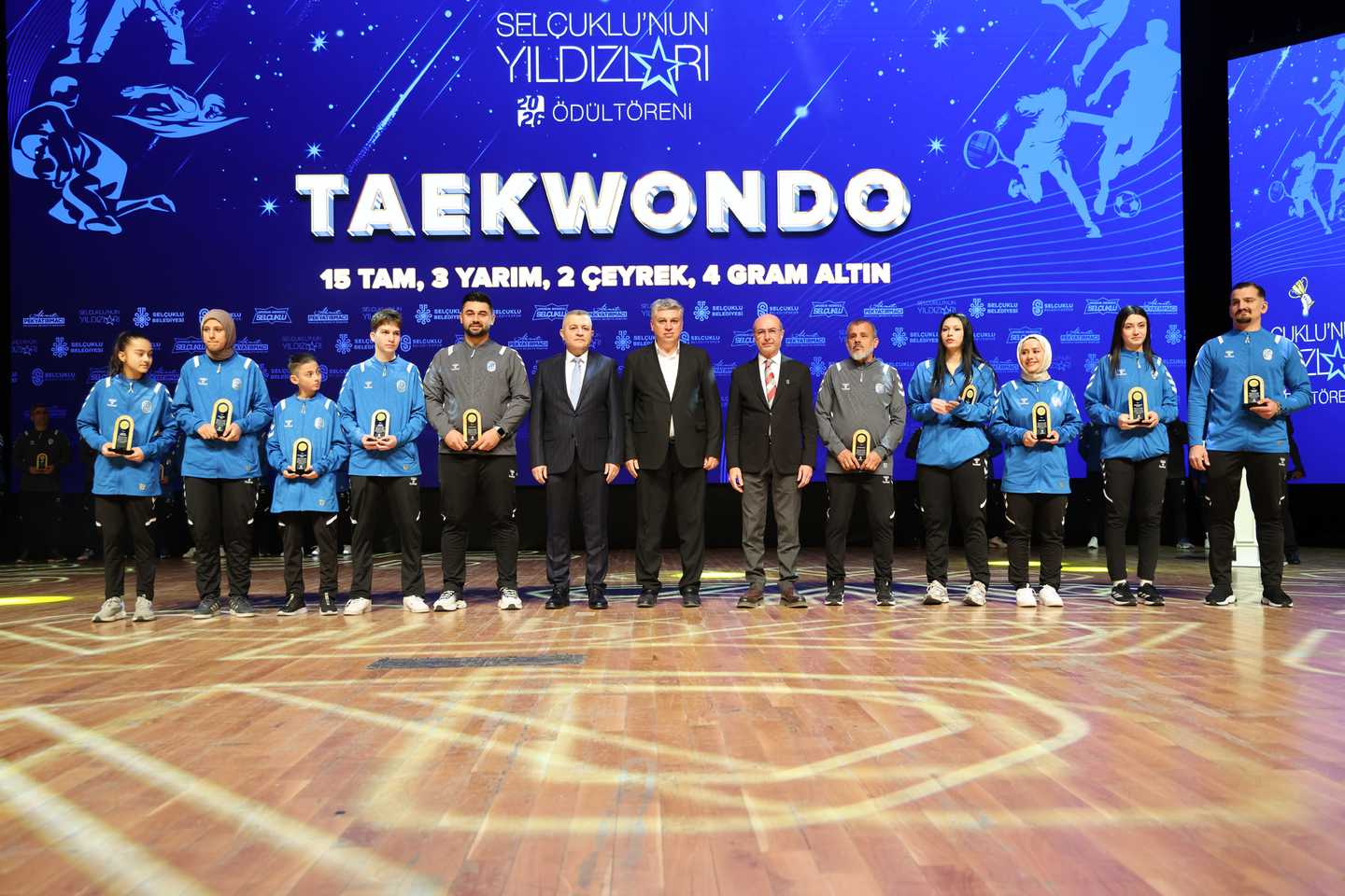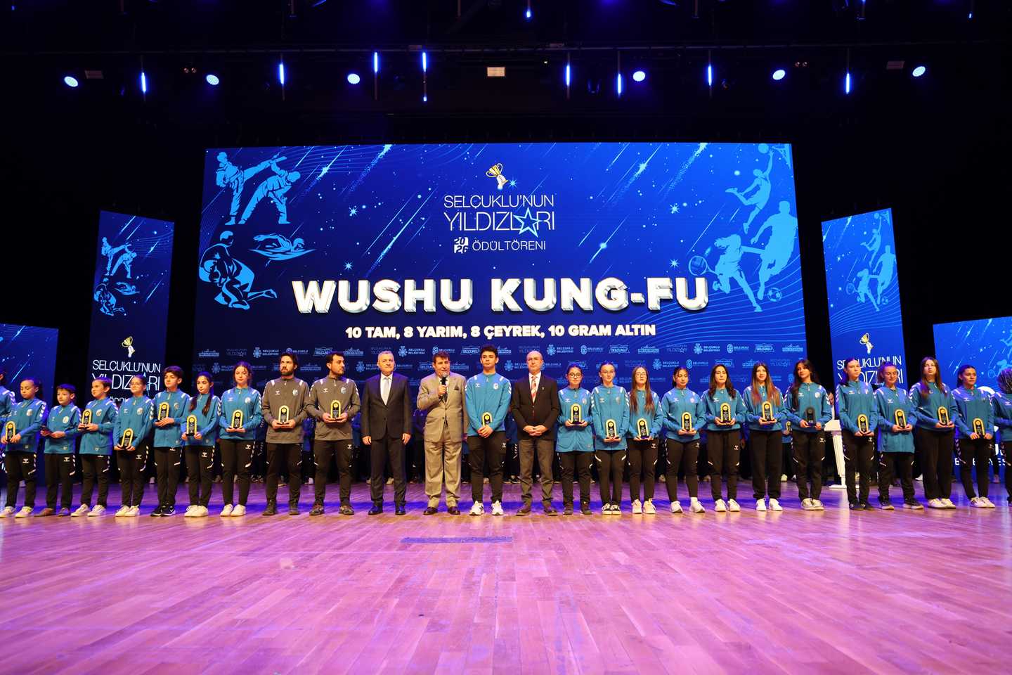 Selçuklu’nun başarılı sporcu ve antrenörleri için her yıl olduğu gibi bu yıl da Selçuklu Belediye Meclisi tarafından “Selçuklu’nun Yıldızları Ödül Töreni” düzenlendi. Selçuklu Kongre Merkezi’nde gerçekleşen programda 12 farklı branşta mücadele eden 100 sporcu ödüllerini aldı.