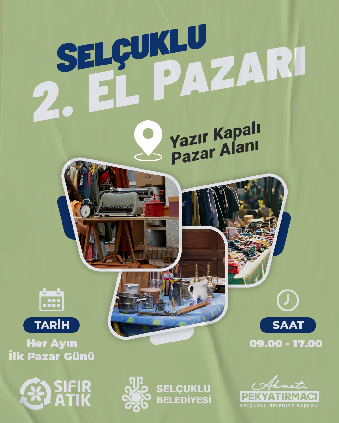 Kullanılmış ürünleri uygun fiyatlarla satın alabileceğiniz Selçuklu 2. El Pazarına tüm halkımız davetlidir.