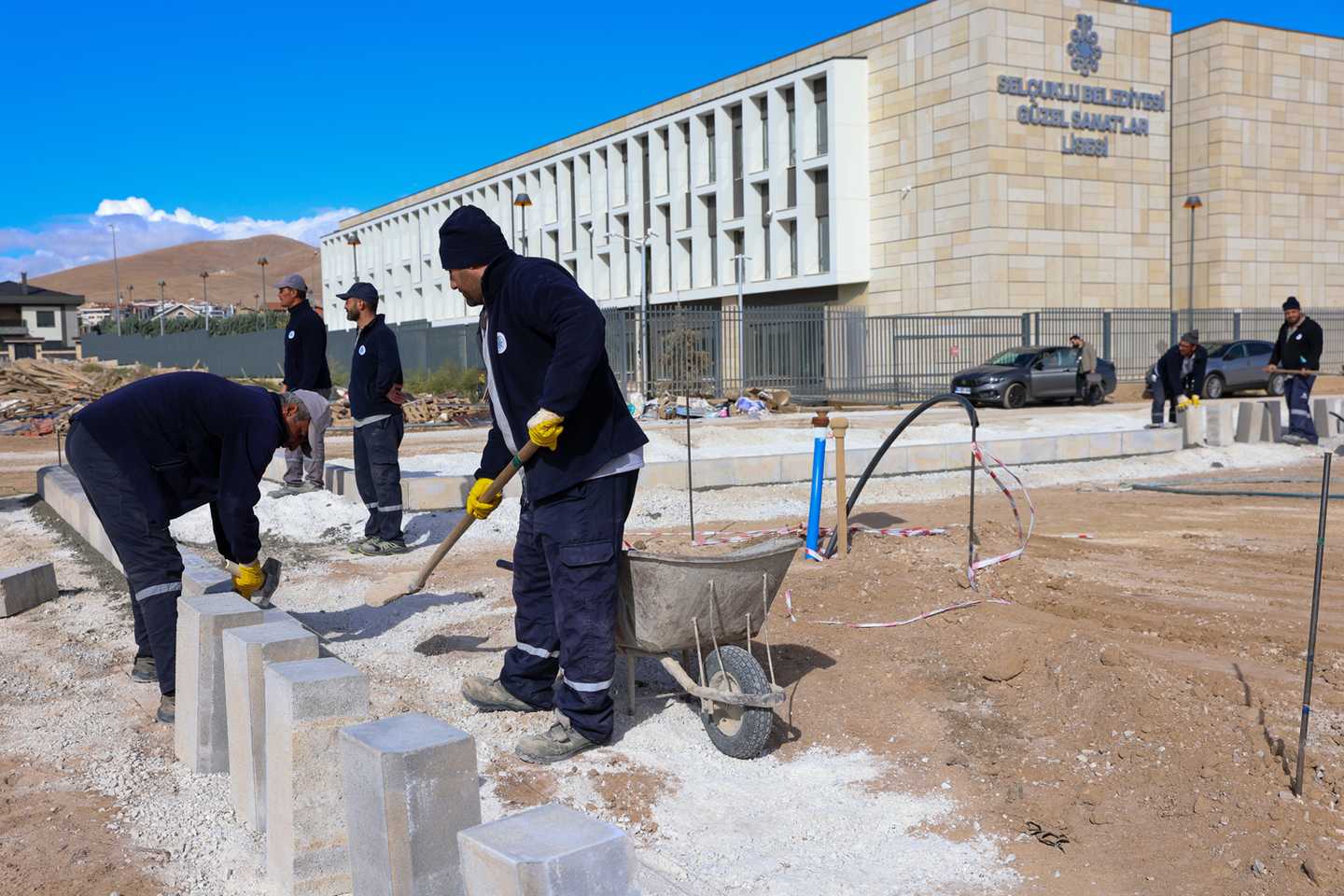 Selçuklu Belediyesi’nin Parsana Mahallesi’nde yapımını tamamlayıp Milli Eğitim Müdürlüğü’ne teslim ettiği Selçuklu Belediyesi Güzel Sanatlar Lisesi’nin arka tarafında bulunan 40 bin metrekarelik bir alanda çalışma yürüttüklerini ifade eden Selçuklu Belediye Başkanı Ahmet Pekyatırmacı, “ Burada büyük bir park alanını, tüm hemşehrilerimizin istifade edebileceği şekilde çok nitelikli, kaliteli bir parkı inşa ediyoruz. Yaklaşık 800 metrelik yürüyüş yoluyla, futbol ve basketbol sahalarıyla, çocuklar için masa tenisi alanları, oyun alanları, yeşil alanlarıyla, banklarıyla ve 500 araçlık da otoparkıyla bütün bölgeye hizmet edecek ve aynı zamanda da Güzel Sanatlar Lisemizin otopark ihtiyacını da ciddi manada karşılayacak büyük bir parkı yapıyoruz. Park Bahçeler Müdürlüğümüzün ekipleri tarafından çok titizlikle çalışma yürütüyor ve çok nitelikli, kaliteli bir imalat ortaya çıkıyor. Bütün Park Bahçeler Müdürlüğü ekiplerimize ayrı ayrı teşekkür ediyorum. Burada yaptığımız çalışma tamamlandığı zaman yine 40 bin metrekarelik bir yeşil alanı, park alanını, çocuklarımızın oyun oynayabileceği, ailelerimizin