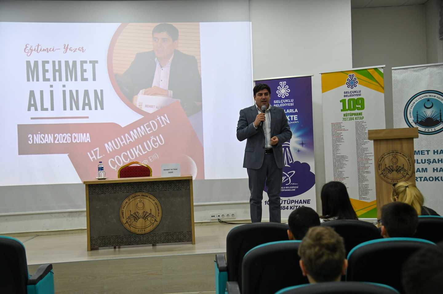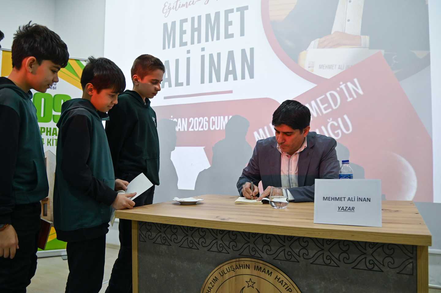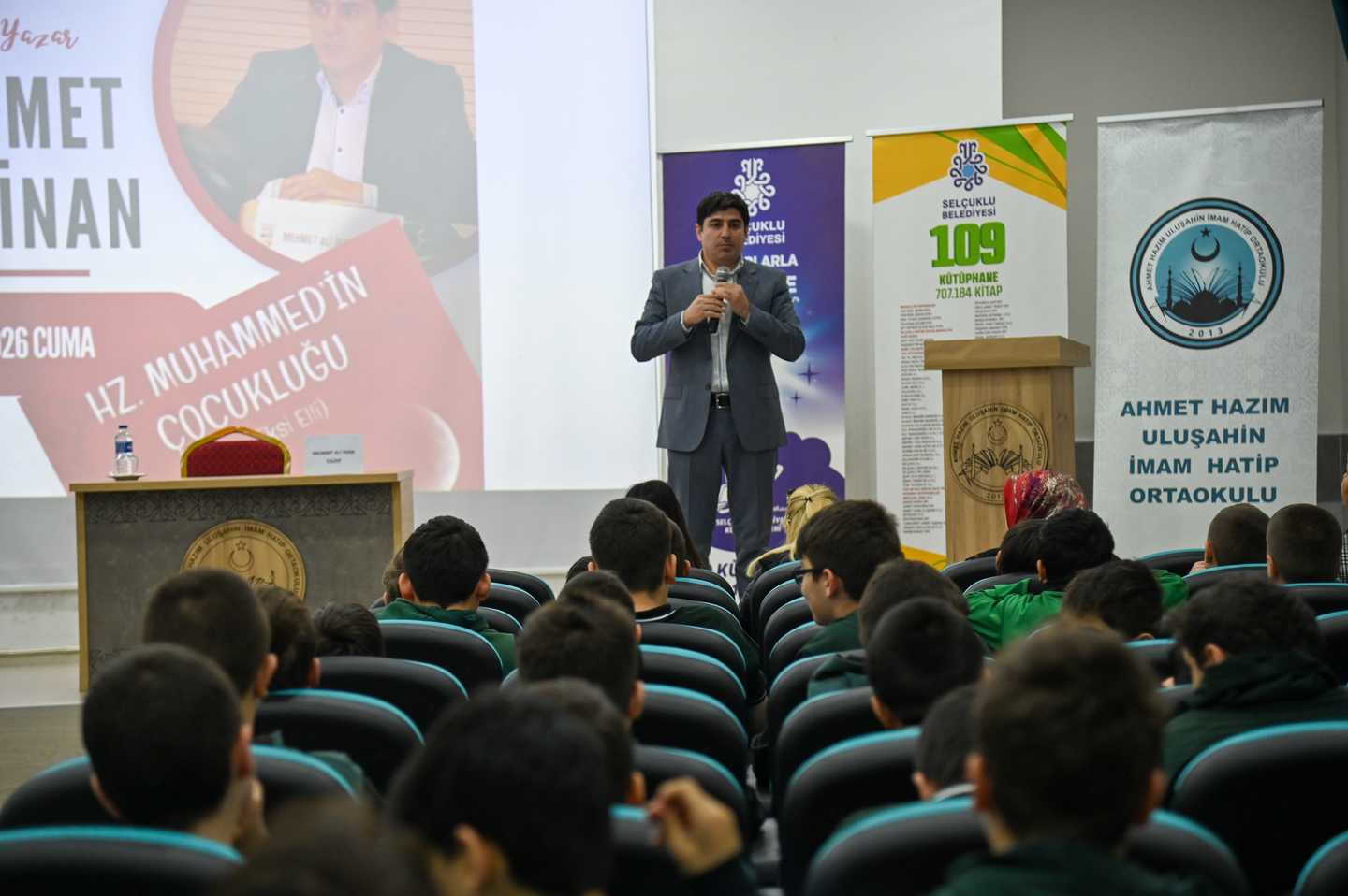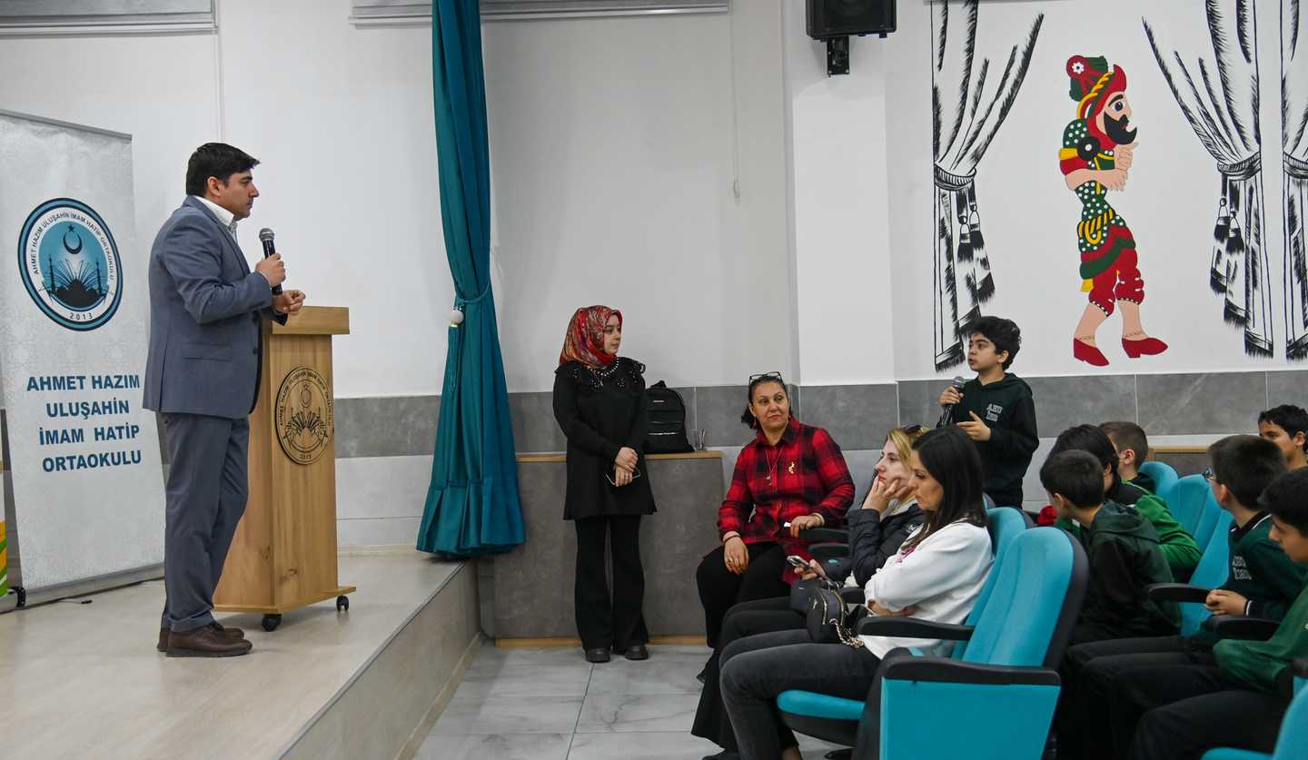 Ahmet Hazım Uluşahin İmam Hatip Ortaokulu’nda düzenlenen etkinlikte Eğitimci Yazar Mehmet Ali İnan, “Hz. Muhammed (S.A.V) ’in Çocukluğu” isimli kitabı hakkında öğrencilere söyleşi gerçekleştirdi. Okumanın önemine değinen İnan, öğrencilerden yazarlık serüveni ve kitap hakkında gelen soruları cevaplandırdı.